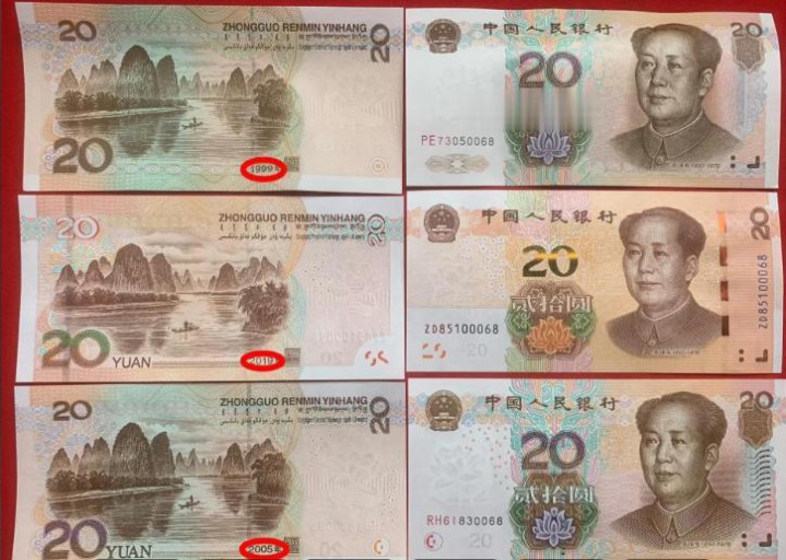 第五套人民币中,20元纸币共有1999、2005和2019三个版本